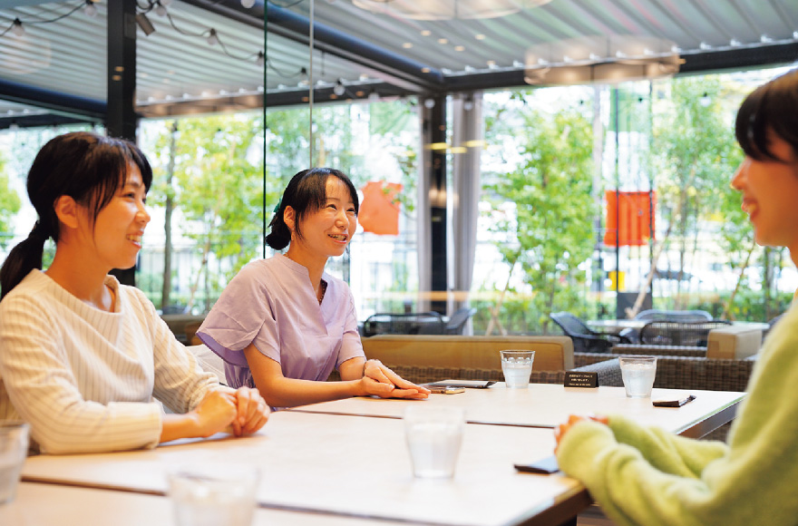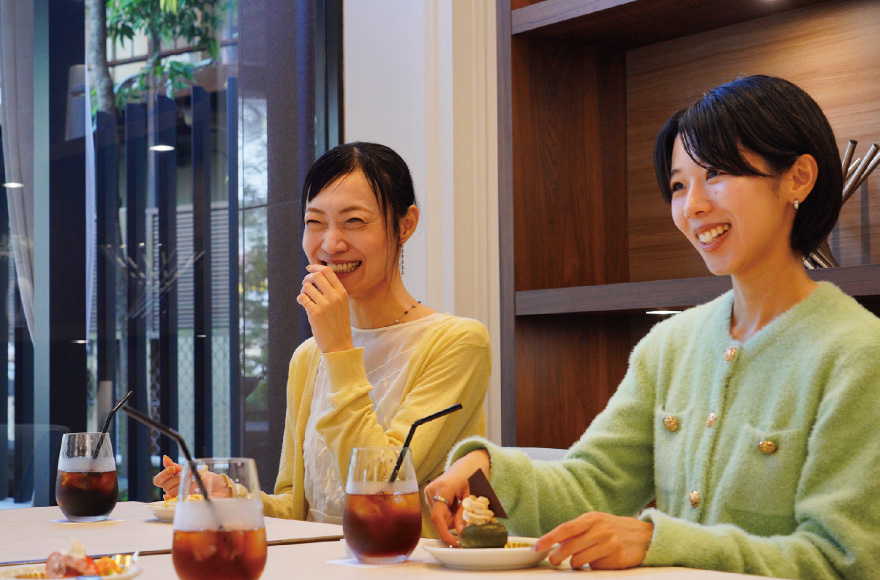 CAFE & DINING Bonheur(約170m/徒歩3分)で開催された座談会。初対面の4人でしたが、ケーキやドリンクを楽しみながら、終始リラックスしたムードに。美味しさと居心地の良さが会話をさらに弾ませてくれました。